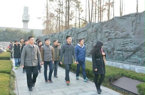 上午9时许,大家首先来到侵华日军南京大屠杀遇难同胞纪念馆。师生表情凝重,庄严肃穆,沿着外景展区、遗骨陈列、史料陈列三部分依次参观。在和平大钟前,张彦书记告诉同学们:今年是中国人民抗日战争暨世界反法西斯战争胜利70周年,我们要铭记历史、缅怀先烈、维护正义、祈愿和平,担当起青年大学生的时代责任,为实现中华民族的伟大复兴而不懈奋斗。