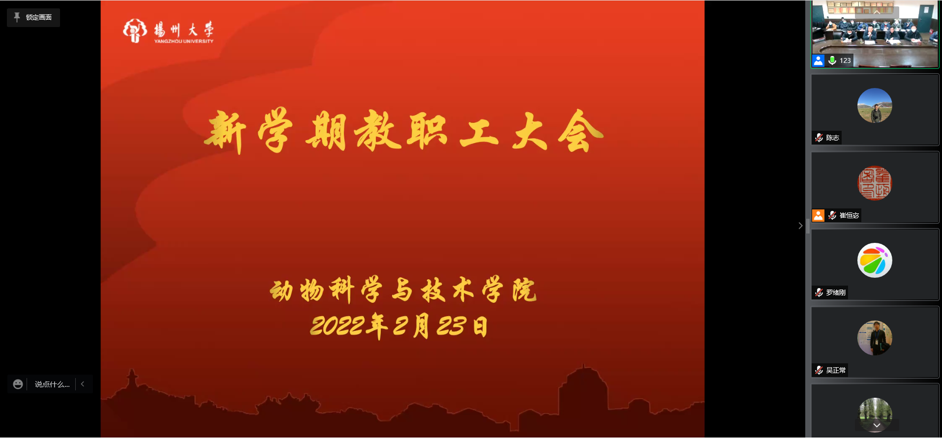 杨章平总结了学院2021年的工作,指出在新农科建设和服务地方经济建设主战场的大背景下,依靠全院师生的智慧和力量,贯彻以师生为本的发展理念,在疫情防控、人才培养、学科建设、科学研究、社会服务、师资队伍、国际交流与合作、支持保障等方面实现事业发展目标持续攀升,再次获高质量发展考核综合奖。杨章平对党建与思想政治、人才培养、学科建设、师资队伍、科技创新、社会服务、国际化和开放办学、学生管理、内部管理与保障等2022年学院党政重点工作做了具体部署。