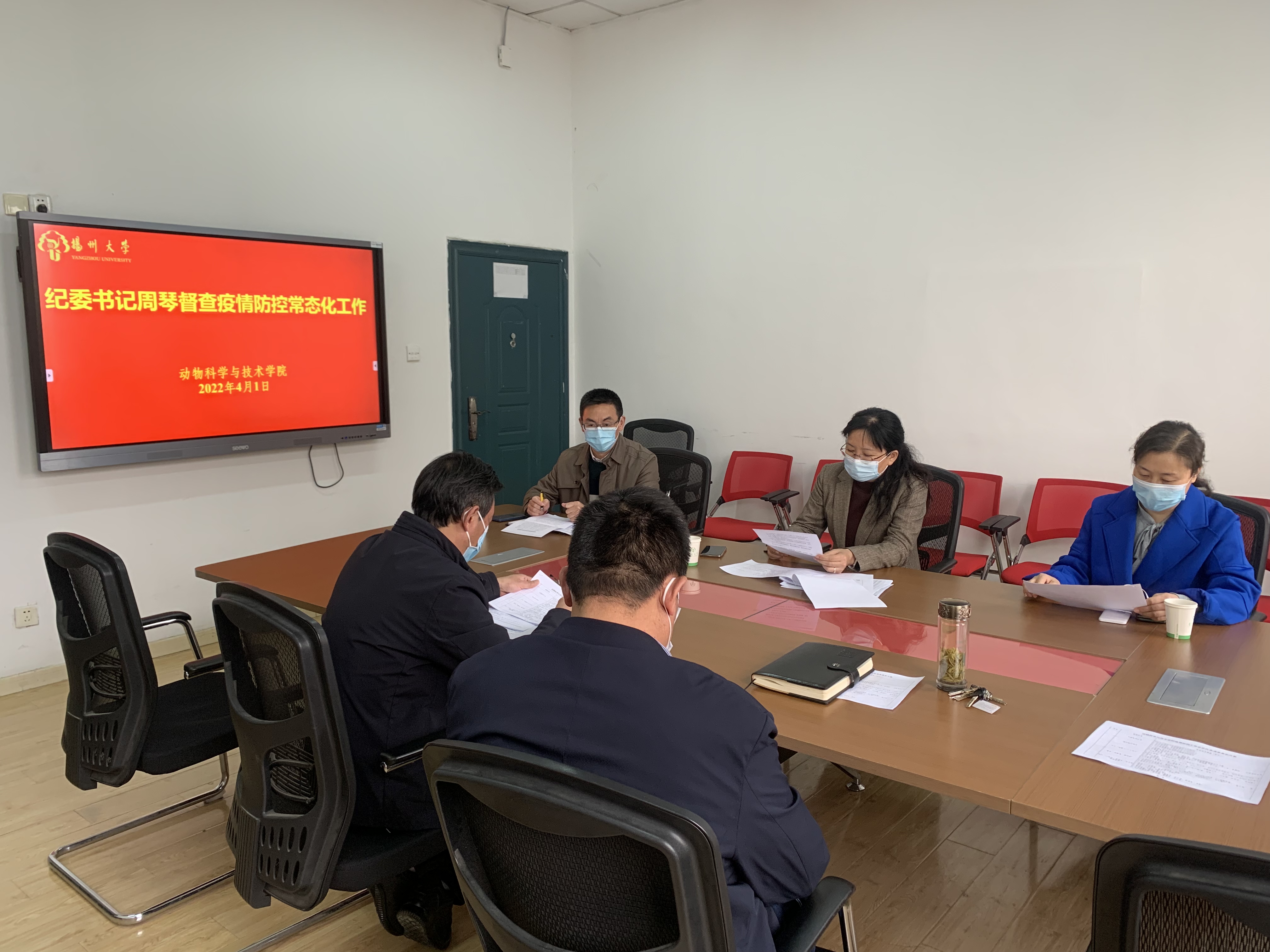 4月1日,校党委常委、纪委书记、派驻监察专员周琴来学院督查疫情防控常态化工作。