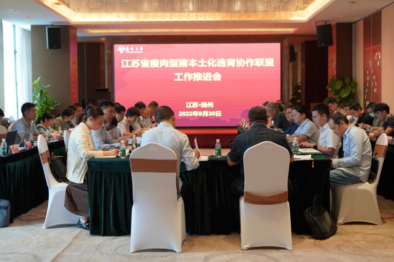 为进一步推进江苏省瘦肉型猪本土化选育协作联盟的工作和成员单位间的分工协作,加快瘦肉型猪本土化选育工作进展,2022年9月29-30日,由我院猪良种繁育创新团队承办组织,江苏省瘦肉型猪本土化选育协作联盟(以下简称联盟)工作推进会在扬州顺利召开,省内高校科研院所、瘦肉型猪重点育种企业(种公猪站)以及省内外知名的生猪育种设备、软件、投入品供应及服务企业等20家联盟成员单位代表参加会议,省农业农村厅畜牧总站和种业管理处相关领导与会指导。