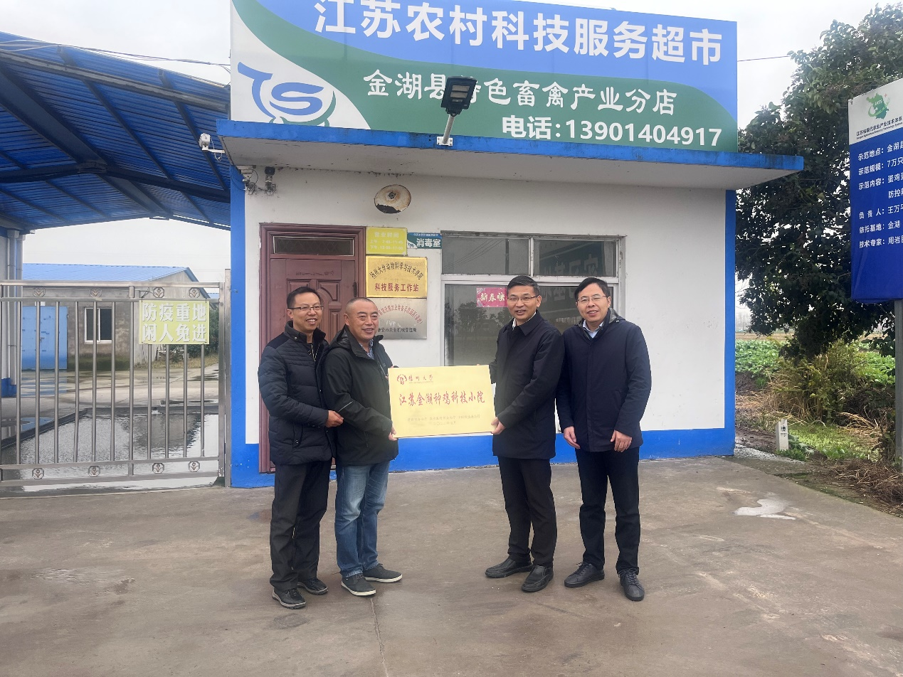 11月29日,江苏金湖种鸡科技小院授牌仪式在金湖县永祥种鸡有限公司举行,刘巧泉副校长主持活动并为科技小院授牌。研究生院王莉副院长、金湖县科学技术协会杨红梅副主席、院长常国斌、研究生院专业学位教育办公室工作人员和江苏金湖种鸡科技小院负责人杨海明等参加活动。