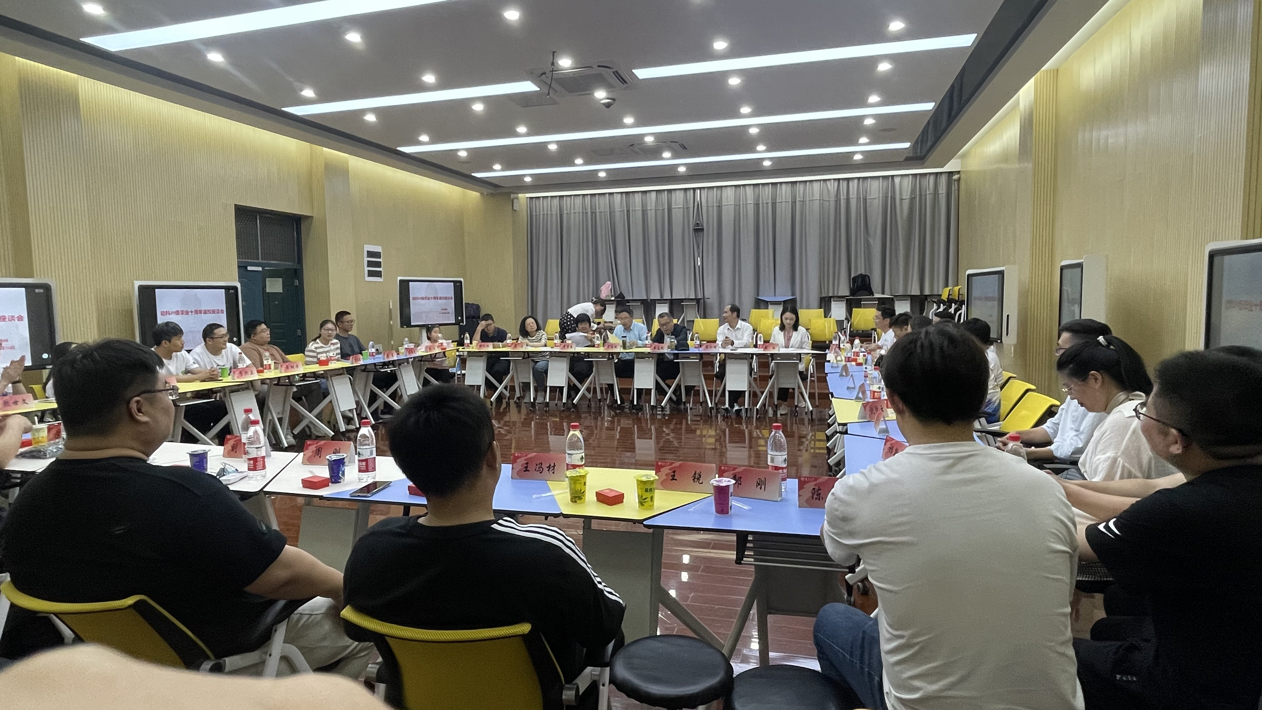 5月20日,怀着对母校满满的感恩与思念之情,动科0901、动科0902和动科0903班校友们举办毕业十周年返校聚会活动,并在推广楼四楼智慧教室召开座谈会,院长常国斌(动科0901班主任)、党委副书记高红明、原院长王志跃、教师代表李碧春、原辅导员张钰、动科0902班主任高波、动科0903班主任喻礼怀和09级毕业校友参加座谈会。校友尉浩华、杨芷主持活动。