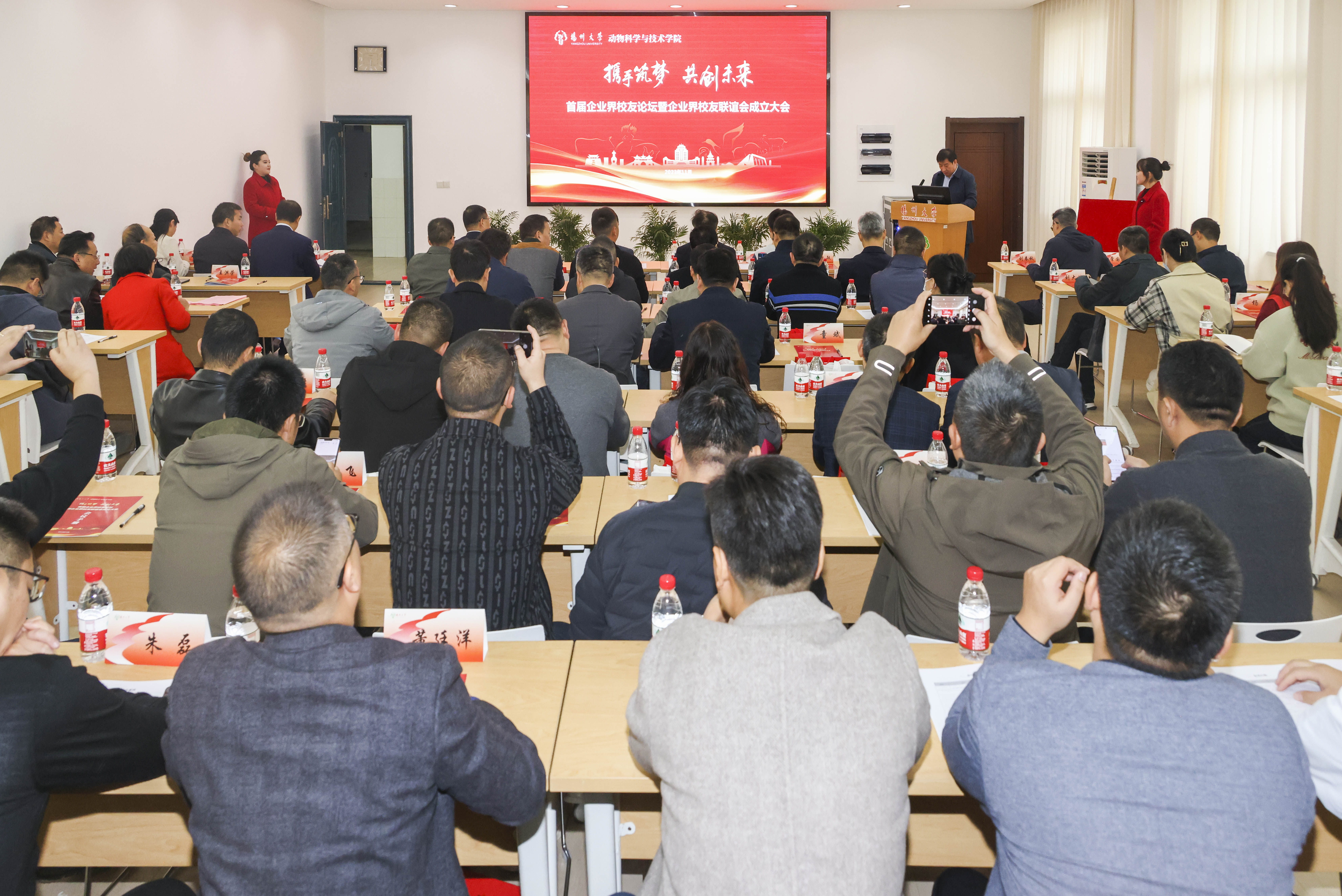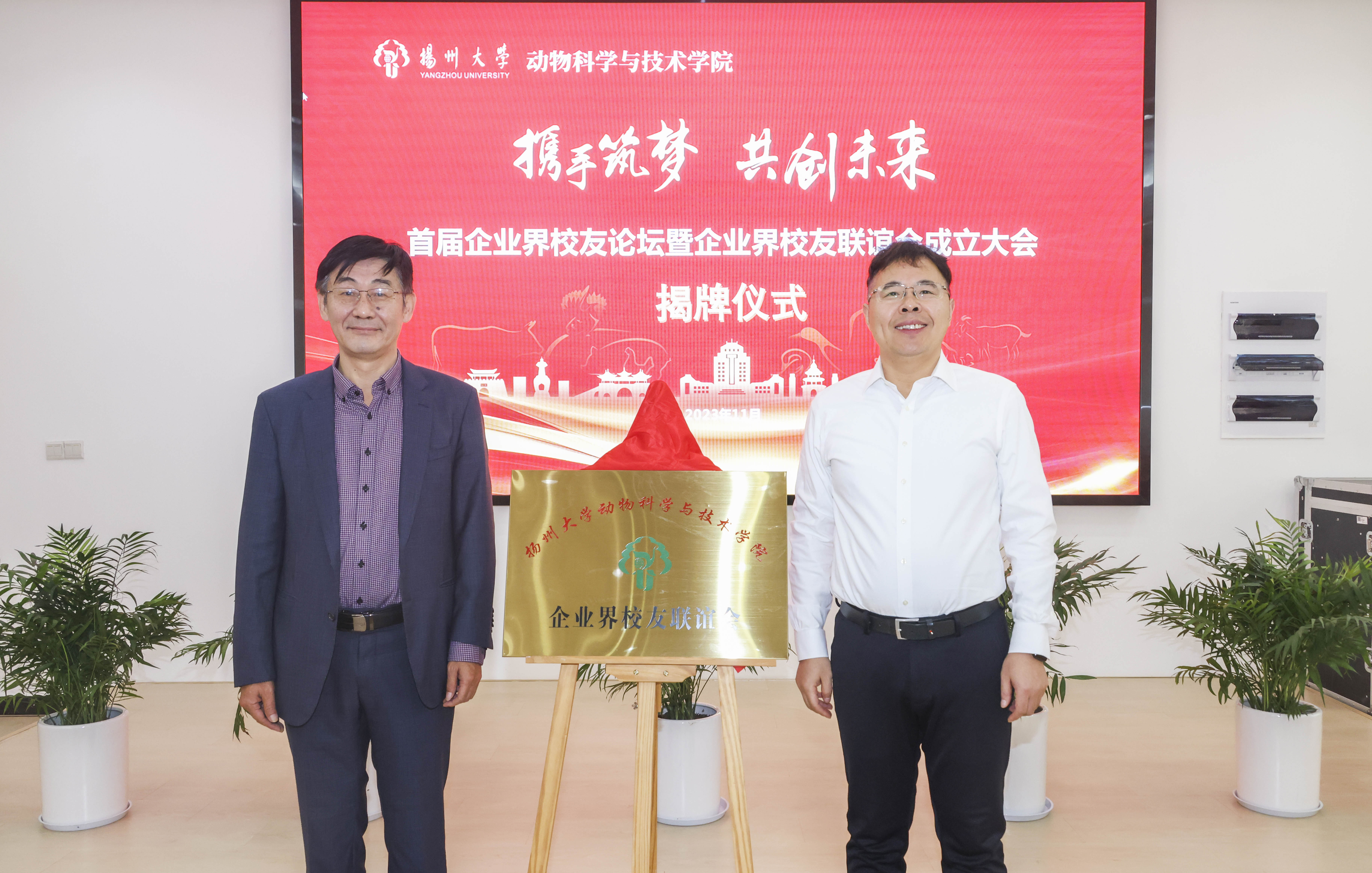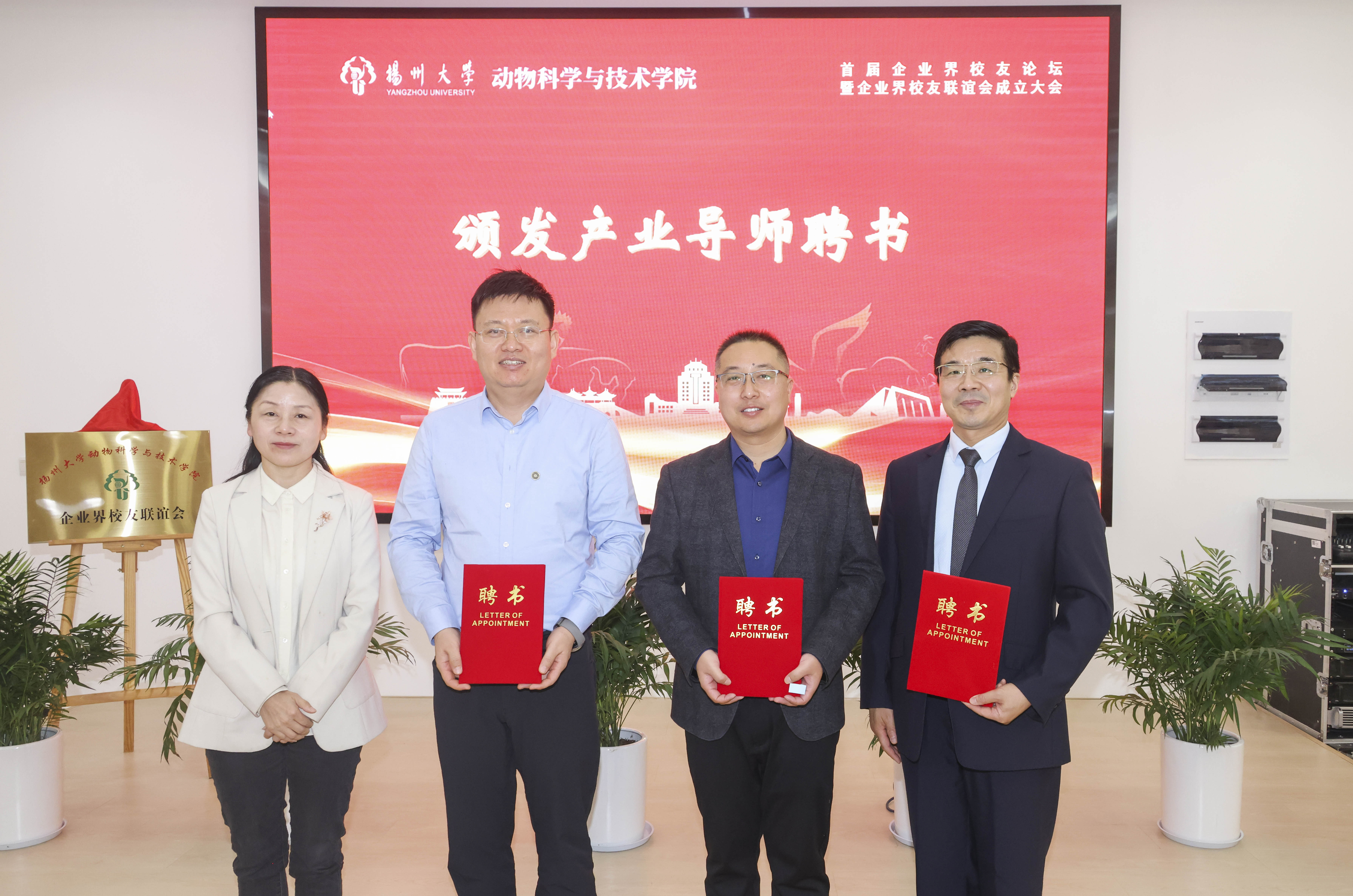 会上,院长常国斌与江苏立华牧业股份有限公司董事长程立力共同为学院企业界校友联谊会揭牌,院党委副书记高红明宣布第一届企业界校友联谊会理事成员名单。各位企业界校友对学院学科建设、人才培养、师资建设等提出很多宝贵意见,学院通过选聘企业高层次人才担任产业导师,将社会与行业的需求带入教学中,协同育人。副院长严学兵宣读了新一批产业导师聘任名单,副院长王梦芝为参会的产业导师颁发聘书。