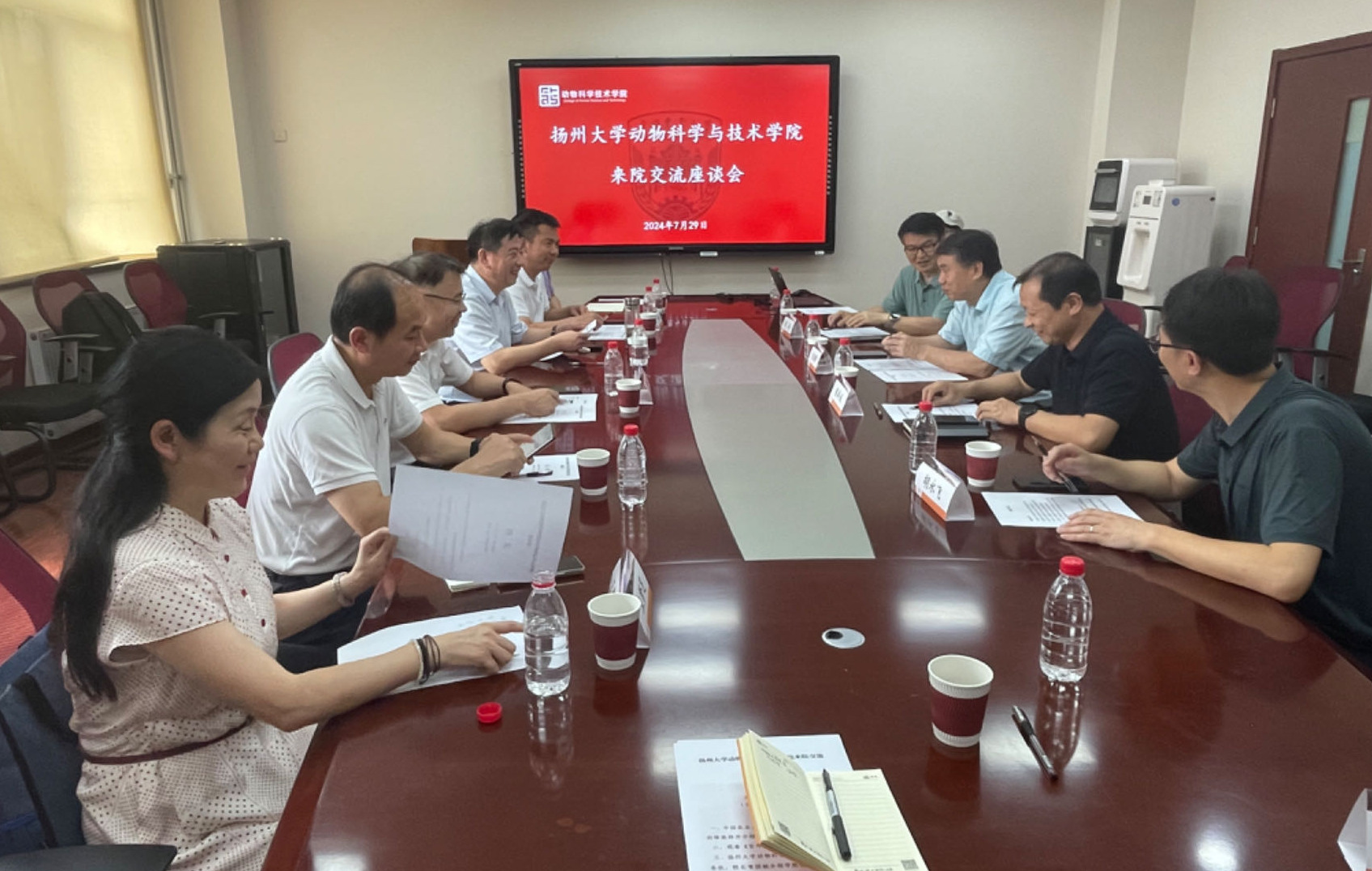 在中国农业大学动物科学技术学院,刘剑锋副院长介绍了动物科学技术学院近年来的发展和建设概况。双方围绕一流学科建设、人才引进、科研成果转化、人才培养质量、科研团队构建等方面进行了深入交流。常国斌院长介绍了我院的发展情况,并表示中国农业大学动物科学技术学院在一流学科建设等方面是畜牧领域的标杆,成绩斐然,为我院学科发展提供了方向和宝贵经验,希望双方今后能开展更加紧密的合作和交流。