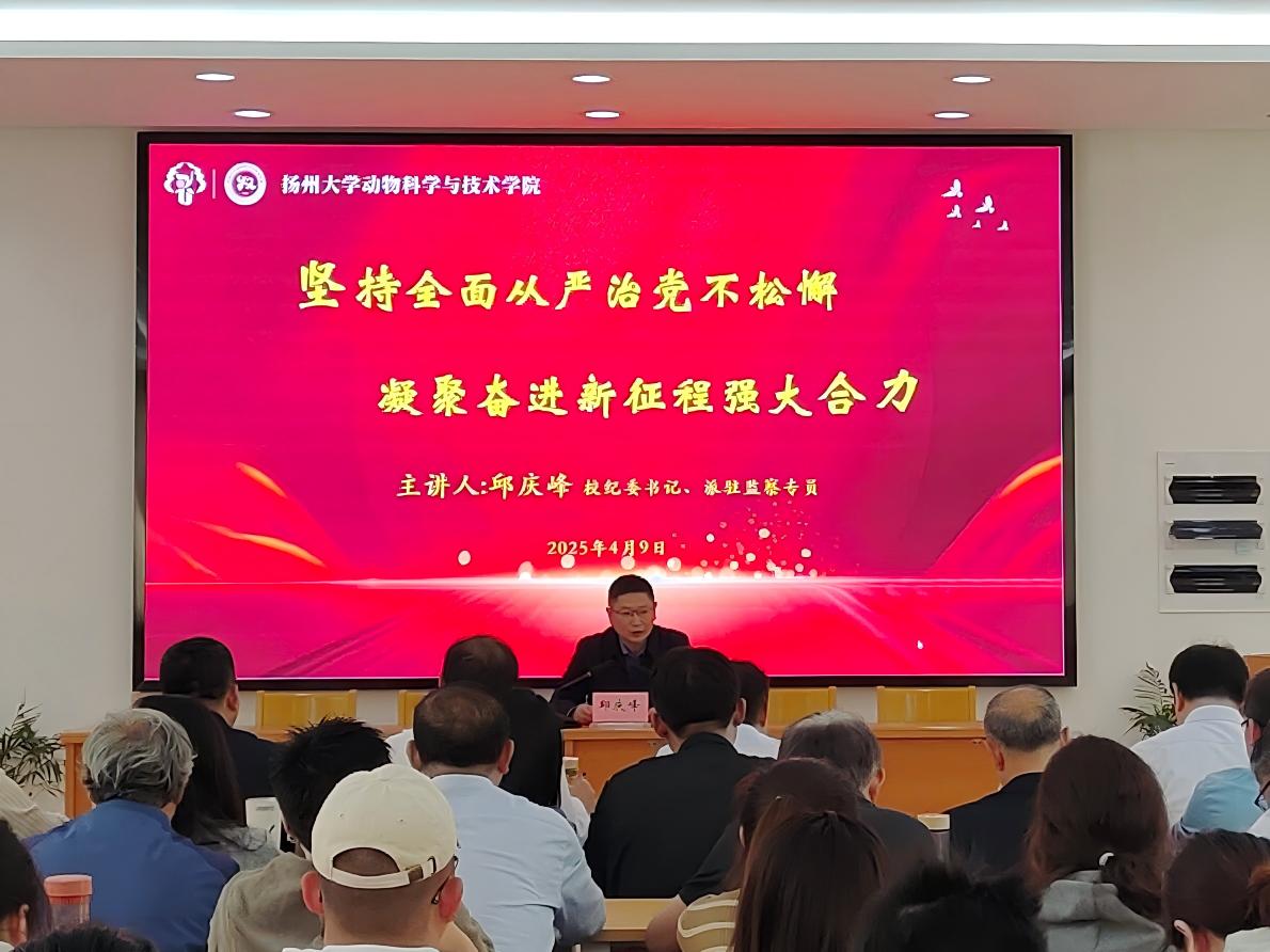 4月9日下午,学院全面从严治党专题辅导报告会在立华报告厅召开。报告会邀请校纪委书记、派驻监察专员邱庆峰作主题报告。会议由院党委书记刘春秋主持,学院理论学习中心组成员、师生党员等120余人参会。