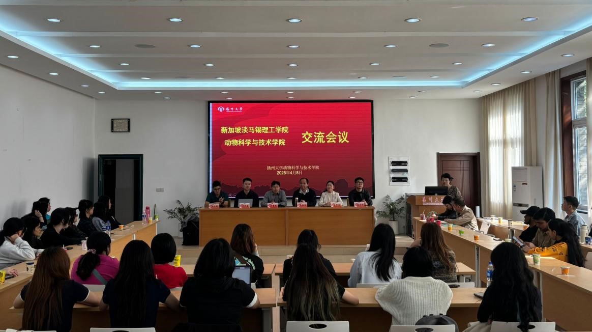 2025年4月8日上午8点30分,扬州大学动物科学与技术学院与新加坡淡马锡理工学院在文汇路校区28号楼二楼立华报告厅举行了交流会议。会议由王梦芝副院长主持。
