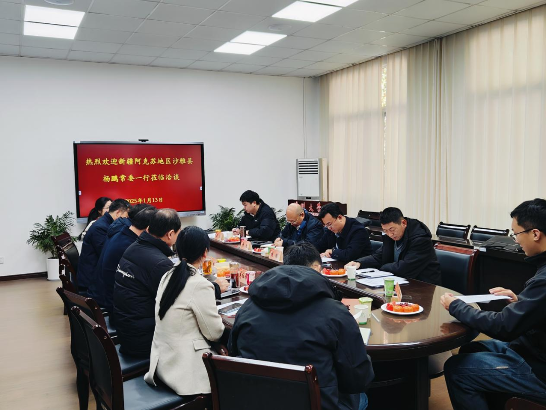 2025年1月13日上午,新疆阿克苏地区沙雅县与扬州大学动物科学与技术学院在文汇路校区28号楼成功举行洽谈会活动,聚焦沙雅县水资源高效利用与新质生产力培育,为未来进一步校地合作打下基础。沙雅县常委副县长杨鹏、水利局局长张强、招商局主任周小、学院党委书记刘春秋、院长常国斌、副书记高红明、副院长严学兵、副院长王梦芝出席会议,水产科学系张晓君、朱雪霞、杨辉、王骏等师生参加。中国水产科学院淡水渔业中心徐跑研究员作为特邀专家出席会议。活动由学院院长常国斌主持。活动首先由院长常国斌介绍学院整体概况,包括专业设置、师资力量及科研成果等方面,全方位展示学院在动物科学与水产养殖领域深厚的学术积淀与技术优势,彰显其助力地方发展的坚实能力基础。随后,沙雅县水利局局长张强就本县发展情况、水资源分布及利用挑战等关键信息进行详细阐述,为后续合作研讨提供翔实背景资料。学院党委书记刘春秋进一步介绍学院社会合作服务工作的丰富经验与显著成效,凸显其服务地方经济、推动产业升级的积极作为与卓越能力,为双方合作奠定良好基础。
