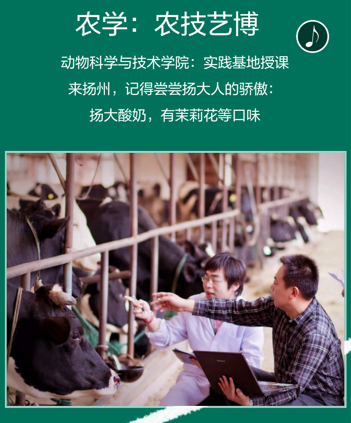 历史悠久,国内闻名——我院办学历史最早可以追溯到1902年由近代著名实业家、教育家张謇先生创建的通海农学堂。学院现有动物科学、水产养殖学和草业科学3个本科专业,畜牧学和草学两个一级学科博士学位授权点和博士后流动站。畜牧学为江苏省优势学科,畜牧学和草学为江苏省重点学科,动物遗传育种与繁殖为国家重点(培育)学科。整体学科实力那是真的“牛”!