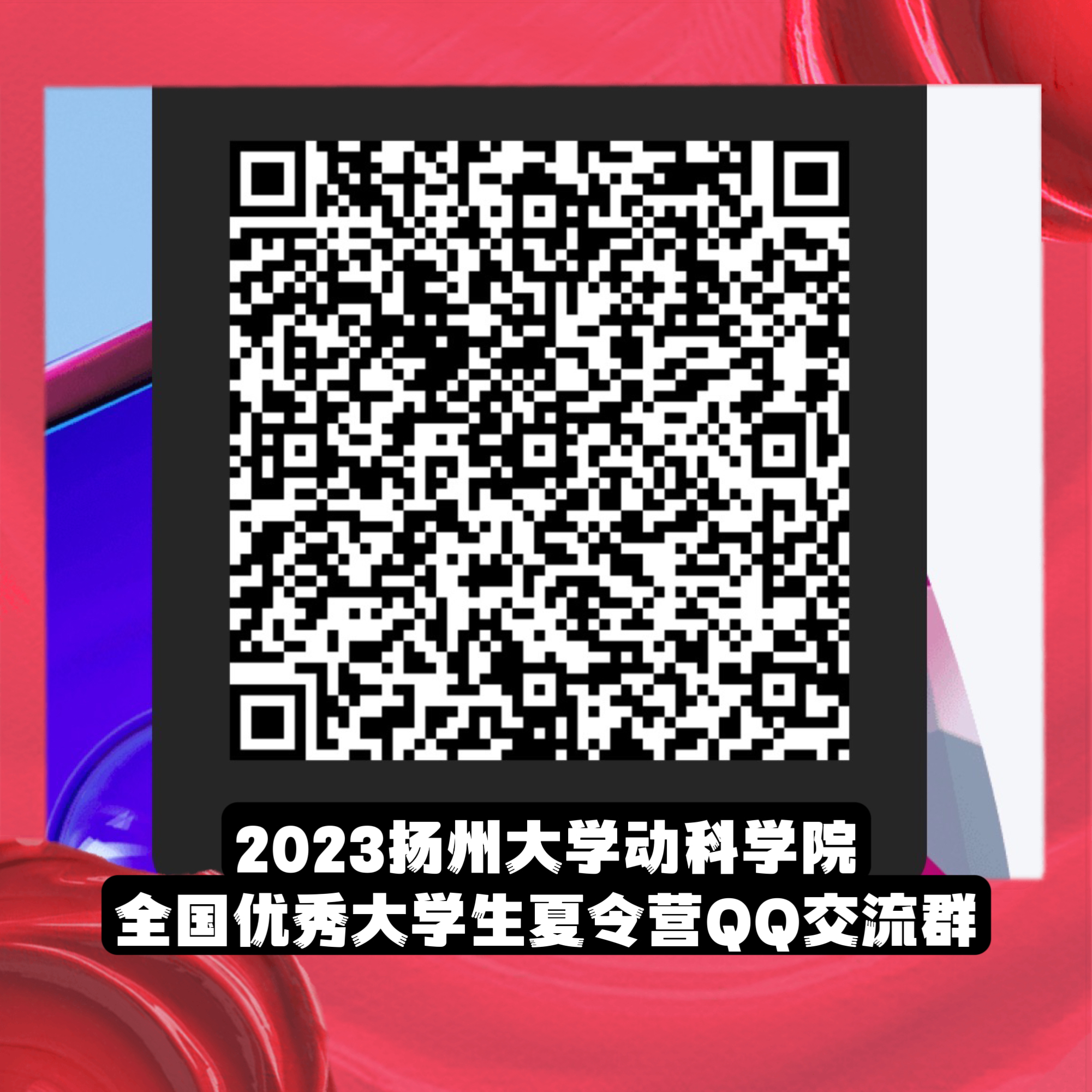上述1-4项材料,请于2023年7月1日之前扫描成PDF文件发送到包老师邮箱hybao@yzu.edu.cn,同时欢迎扫码加入扬州大学动物科学与技术学院全国优秀大学生夏令营QQ群(群号为:673111780)进行交流。