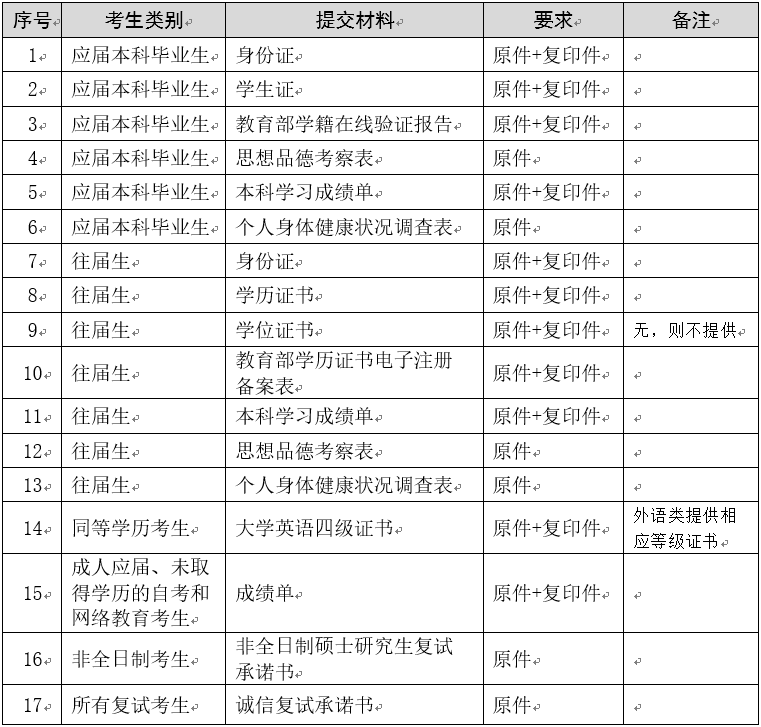 研究生复试录取资格审核材料汇总表