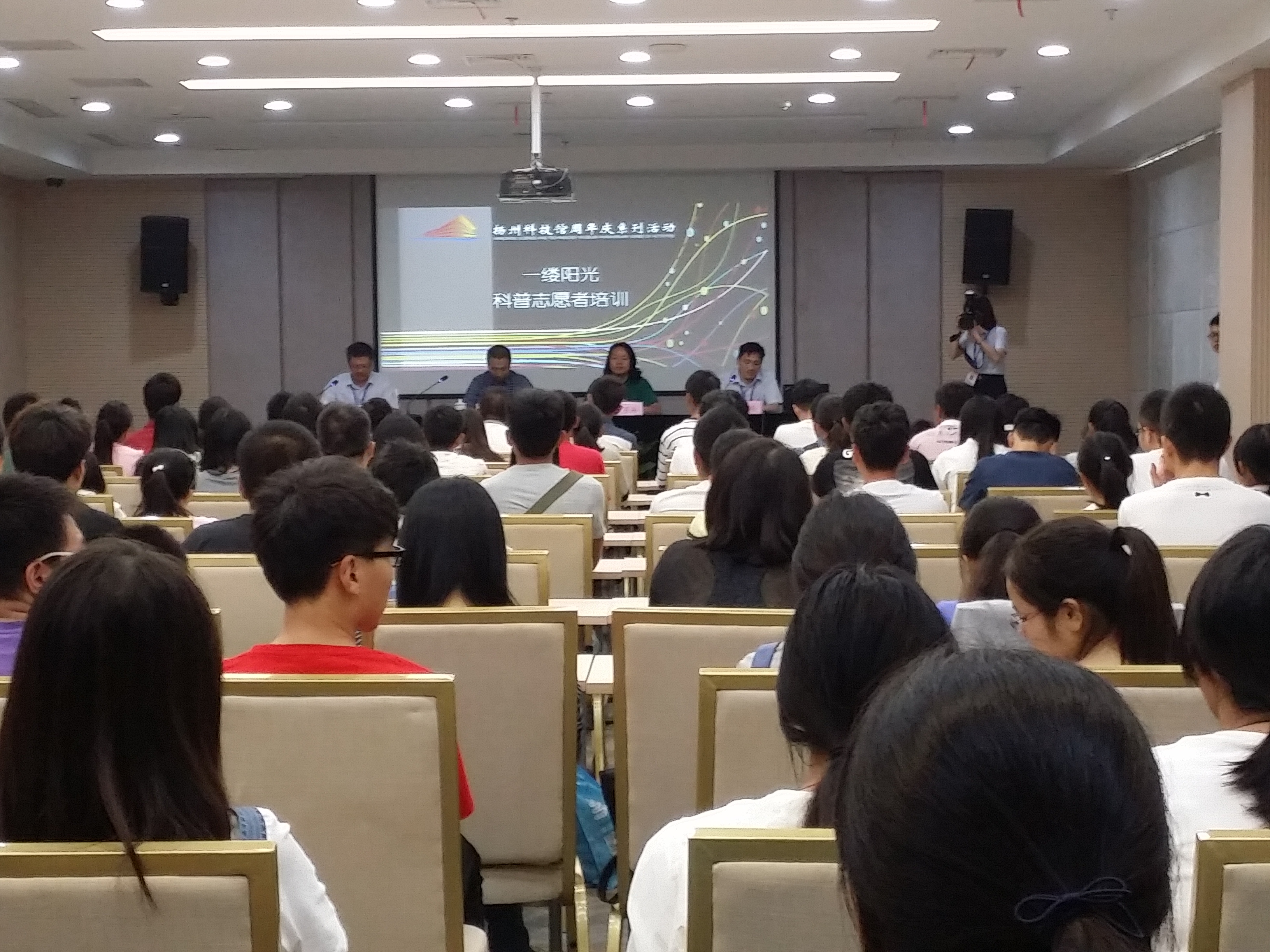 与此同时,随行队伍中有不少大二大三年级的同学报名参加了扬州科技馆的志愿服务工作。为了更加深刻地了解志愿精神,学习先进的志愿服务理念,提升整体综合素质能力,我院学子受邀参加扬州科技馆为志愿者们举办的“践行志愿精神 助力科学普及”扬州科技馆周年庆系列活动——“一缕阳光”科普志愿者培训座谈会。
