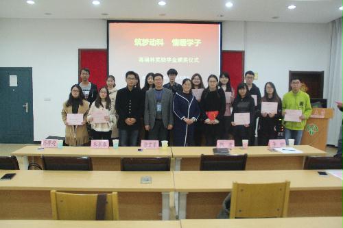 11月20日下午,学院在立华报告厅隆重举行蒋瑞林奖助学金颁奖仪式,江苏富裕达粮食制品有限公司董事长徐宏琴、副总经理朱在春、校友蔡缪荧,院党委副书记张彦、院团委辅导员李怡以及17位蒋瑞林奖助学金获得者出席颁奖仪式。院团委副书记任扬主持仪式并宣读获奖者名单。