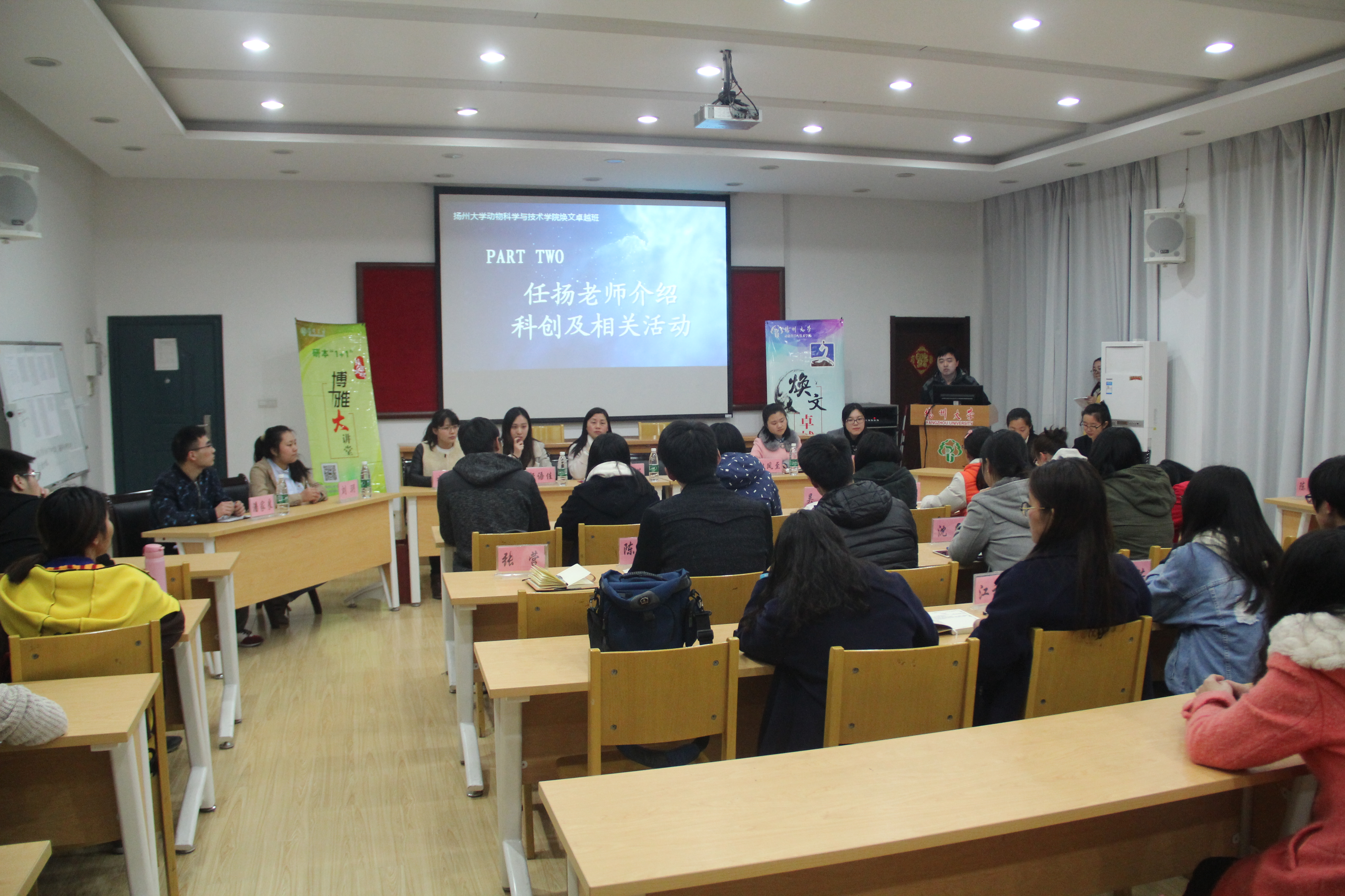 3月29日晚19:00,我院于28号楼立华报告厅开展了焕文卓越之“众创之逐”宣讲会。院团委副书记任扬、院团委辅导员李怡、特邀院全国专业技能大赛及“挑战杯”比赛指导老师王梦芝、院研究生代表省级“挑战杯”比赛获奖者经语佳、“科创项目”优秀学生代表陈梦然、校科协三位代表及院科协主席团出席本次会议并发表讲话。学院特色班级焕文卓越班班长陈晨以“激活思想,逐梦科创”为主题主持本次会议。焕文卓越班全体成员及大一大二学生代表参加本次宣讲。