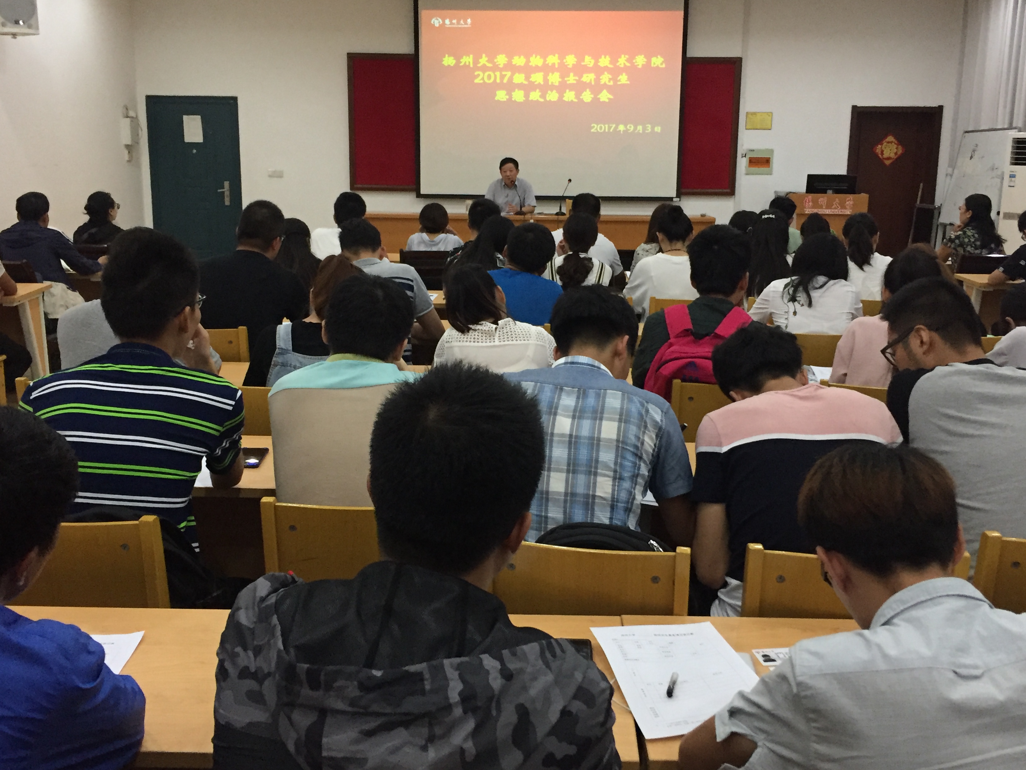 在大家满怀期待下,动科院学生心目中的“最萌院长”吴信生老师为大家作思想政治报告会,逐一介绍了动科学院研究生培养方案、创新项目申报、奖学金评定制度、国际交流项目等系列学生关心的问题;并向大家传达了动科学院学风思想,从学术作风、科研态度、硕博论文评审制度、安全问题等方面向大家提出了几点要求,希望通过未来几年研究生阶段的学习,使大家在科研素质、学习生活等方面得到全方位提高。