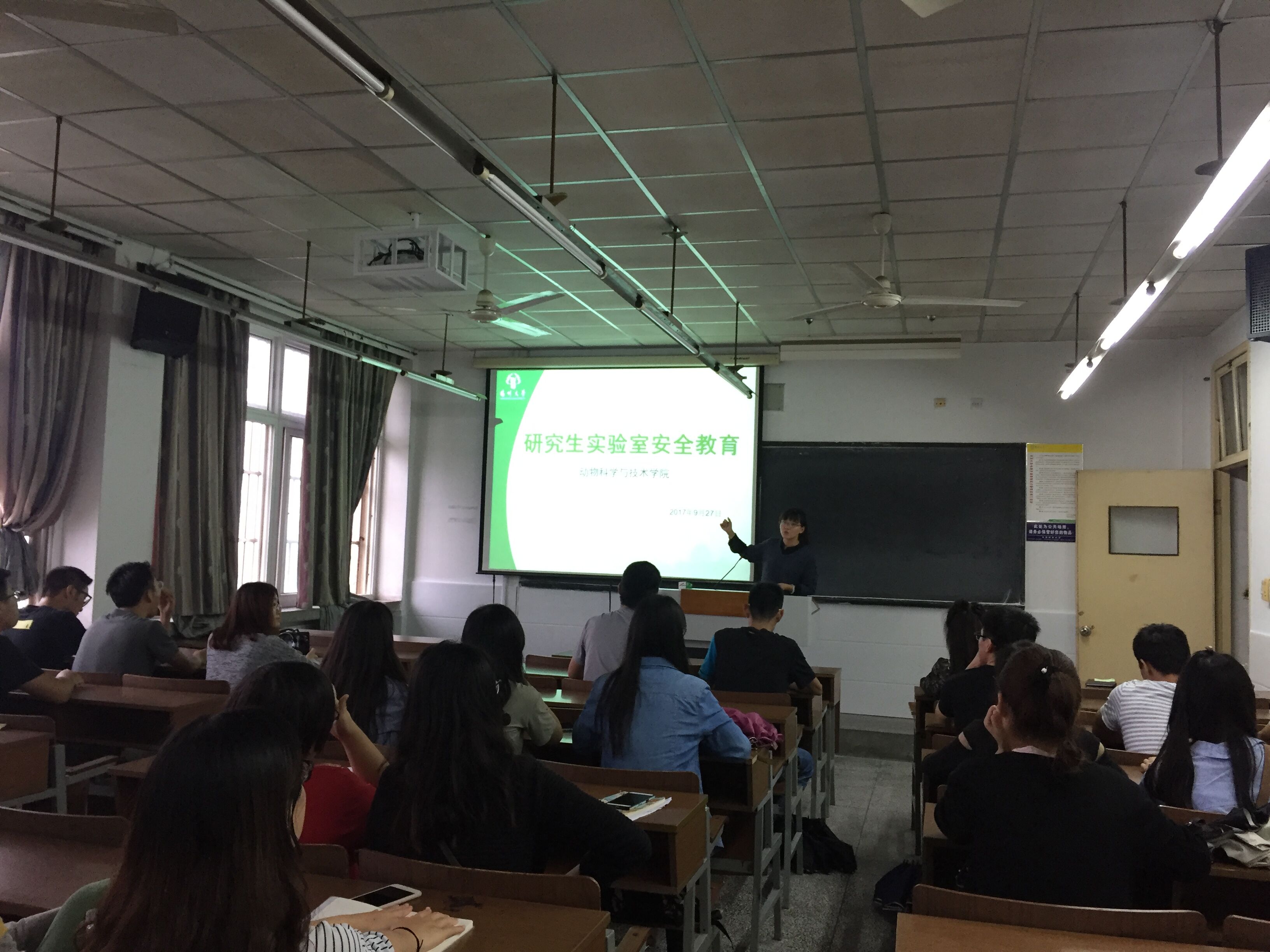 为增强研究生实验室安全防范意识,我院于9月27日下午在23号楼教室举办研究生实验室安全教育讲座。各年级班委会成员、研究生会与大学生科学技术协会成员参与活动,团委辅导员李怡主持本次活动。