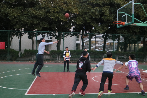 虽然天气比较寒冷,但老师和同学们的热情丝毫没有减弱,李怡老师特地来到现场为大家加油助威。在充分的热身活动之后,裁判员一声哨响,比赛正式开始。同学们率先依靠速度优势,连续由王俊凯,刘旭然中投得手,取得领先。但老师们默契十足,团队配合行云流水,通过多次传球总能找到空位的机会,常国斌和刘龙老师连续命中,很快反超比分建立优势,老师们以30比22领先结束上半场。易地再战,徐琪老师发挥身高优势,多次内线拼抢篮板二次进攻打中,同学们采取全场紧逼,迫使老师们出现失误,由邓哲宇,张晨悦反击缩小分差。老师们经验丰富,阵地进攻通过挡拆成功破解防守,连续命中,最终全场比赛结束,老师代表队以52比40战胜新生代表队。