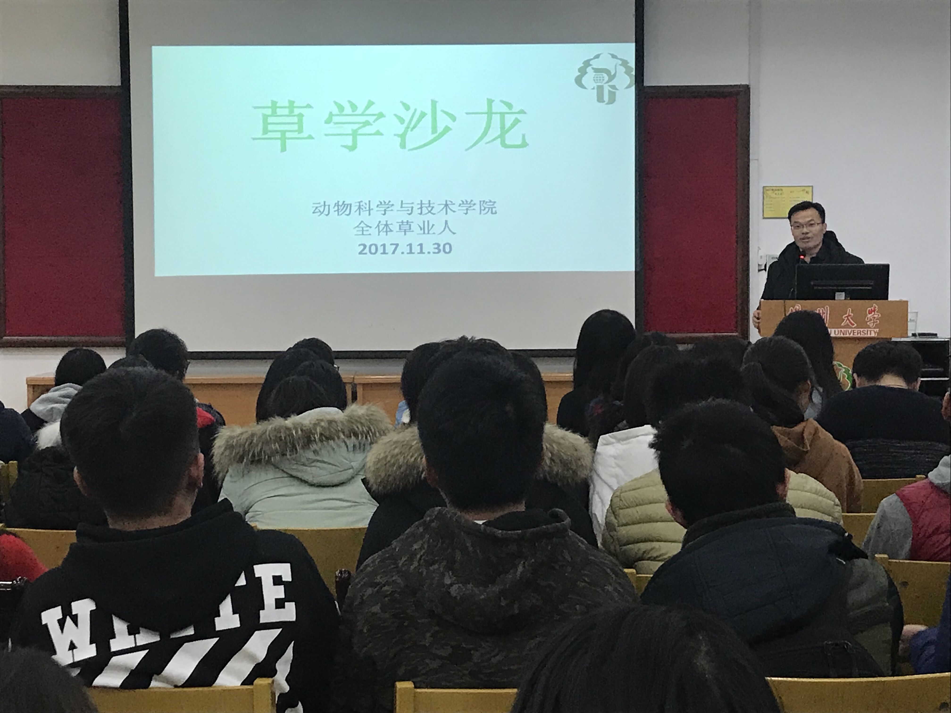11月30日下午4点,动物科学与技术学院草学沙龙活动于立华报告厅成功举行。此次沙龙活动由草业1501班主办,以“本科生导师制,做自己喜欢的科研”为主题,邀请了来自草学专业近百名同学与十一名草学专家共同参与。