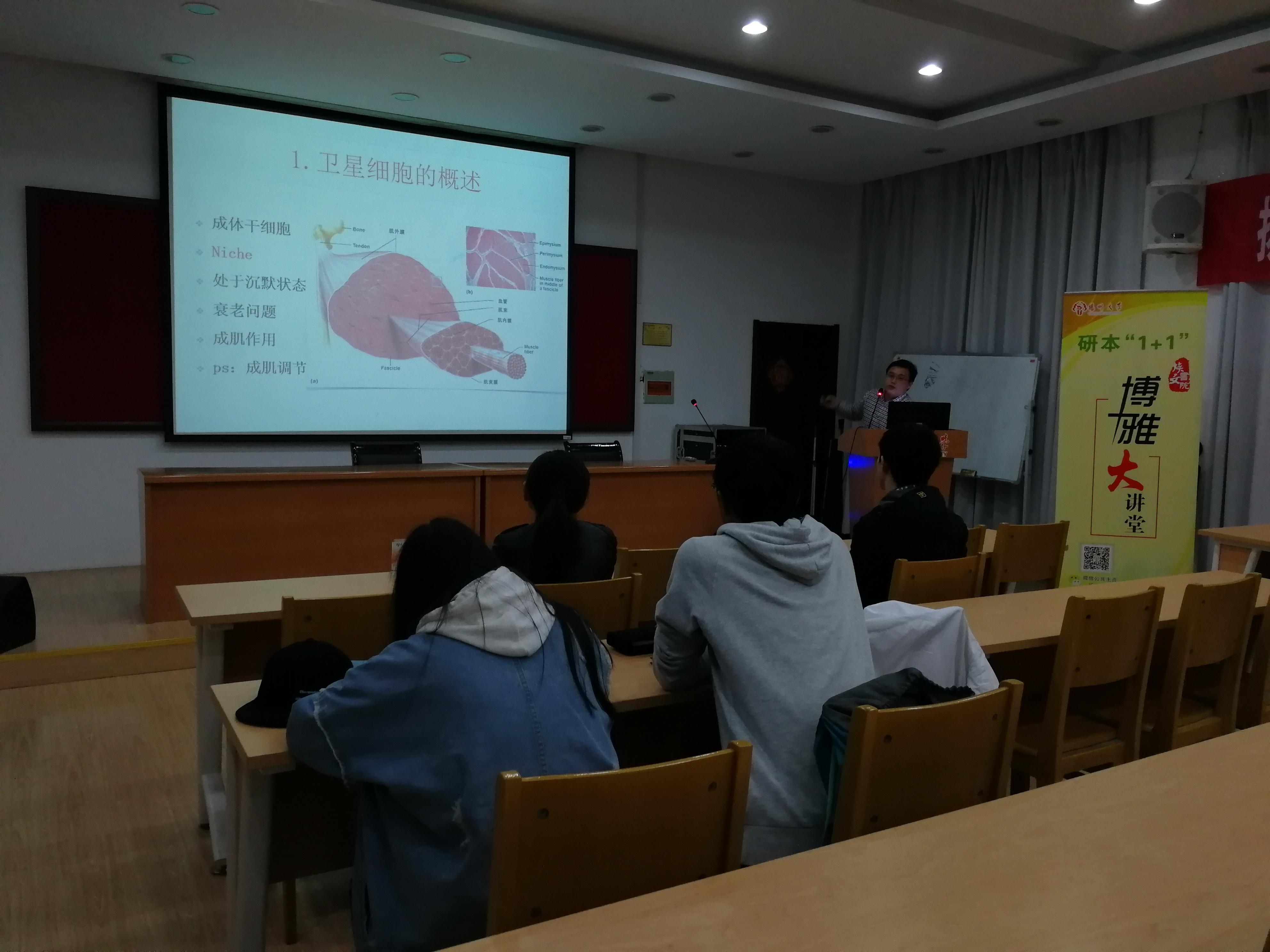 在博士们讲解过程中,师生讨论热烈,增强了研究生和本科生之间的学术交流。( 刘楚君供稿)
