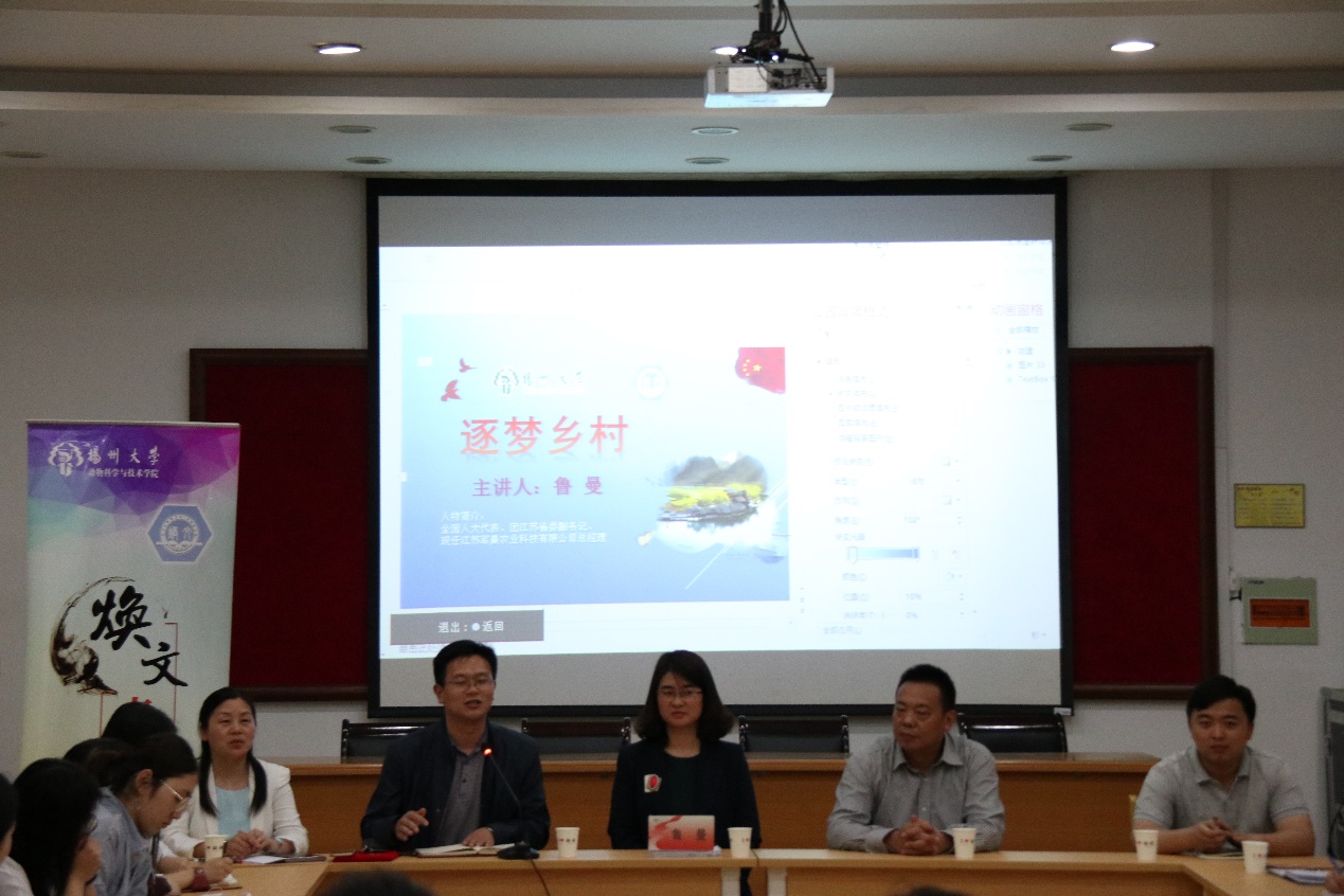 为响应国家“乡村振兴”战略的号召,5月24日,焕文卓越班于牧医楼立华报告厅举办“兴三农、振乡村、唤卓越”主题班会。班会邀请到了全国人大代表、团江苏省委副书记、现任江苏军曼农业科技有限公司总经理的鲁曼女士做专题交流。院长杨章平教授,团委副书记任扬、李怡老师,焕文卓越班班主任王梦芝老师,以及焕文2、3班全体同学出席了本次会议。院党委副书记王小龙主持本次会议。