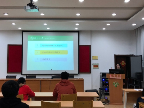 活动伊始,王来娣博士的《鹅肥肝miRNA及家禽营养素研究汇报》,调控功能的非编码RNA作用为我们在其它动物身上开展研究提供了思路;胡帅帅博士《表观遗传学相关研究》的报告,遗传学的相关知识让我们温故知新;卢徐斌博士通过《GEO数据库的分析-以奶牛乳腺炎为例》,为同学们今后利用软件处理数据开辟了新方法;王亚丽博士带来了题为《CRISPR/Cas系统介导的高效基因编辑技术》的报告,使我们对于基因编辑技术又有了一个全新的了解,科研永远是值得探索的过程。