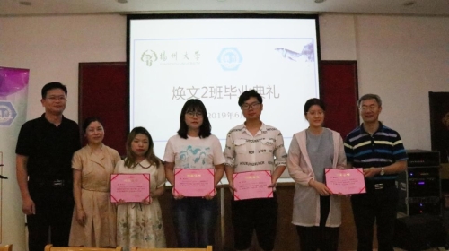 焕文二班班长陈晨、团支书朱恩昊同学在发言中分别汇报焕文班建设所取得的成绩并分享焕文班同学砥砺奋进的感人故事。与会领导、老师共同为焕文二班同学分别授予结业证书。最后,焕文四班班长周梓涵作表态发言,号召全体同学承焕文精神,继学长之志,努力拼搏,促牧兴农。