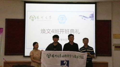 夏日的文汇路校园,林木葱茏,骊歌声声。近期,动物科学与技术学院于牧医楼立华报告厅举行焕文卓越班二期班结业与四期班开班典礼。院党委副书记王小龙,院团委副书记任扬、辅导员李怡参加活动,校外班主任、大连三仪动物药品有限公司副董事长江庆国出席典礼,班主任王梦芝主持仪式。