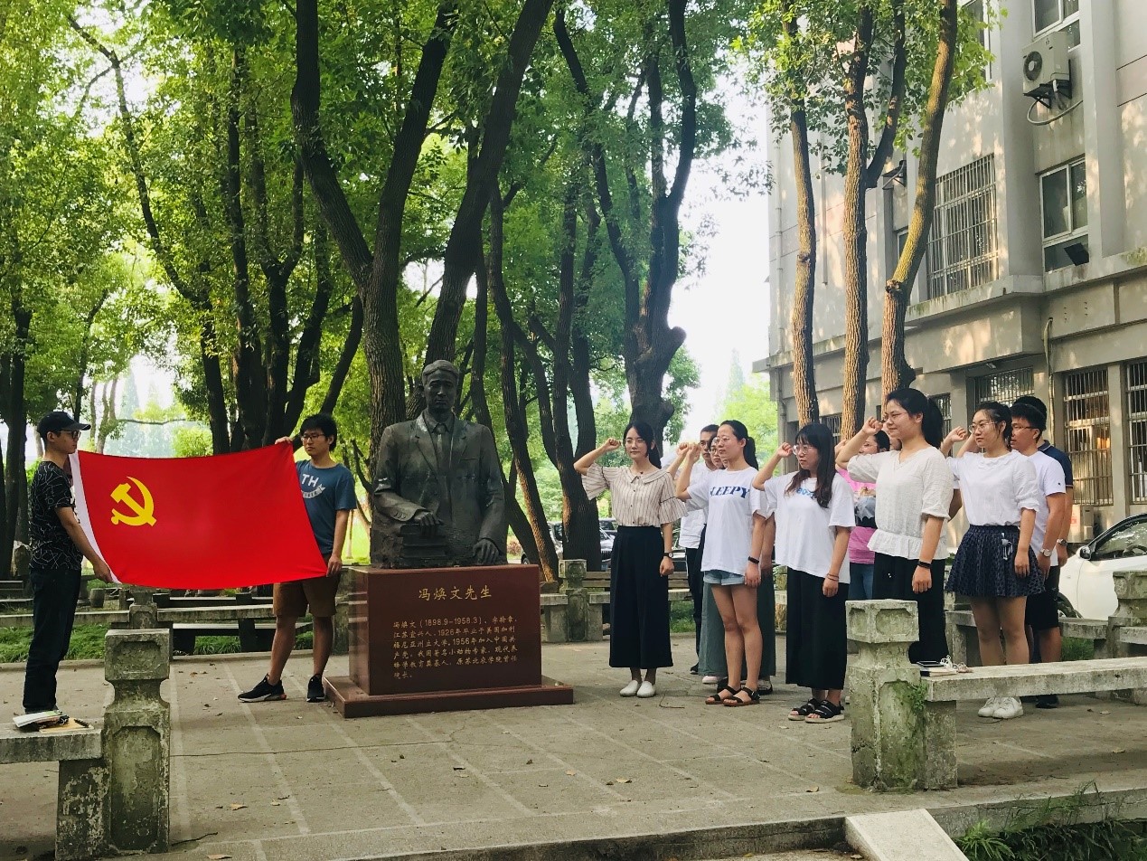 会后,全体党员博士团参与,在冯焕文先生塑像前重温入党誓词,时刻提醒自己,不忘初心,牢记使命。