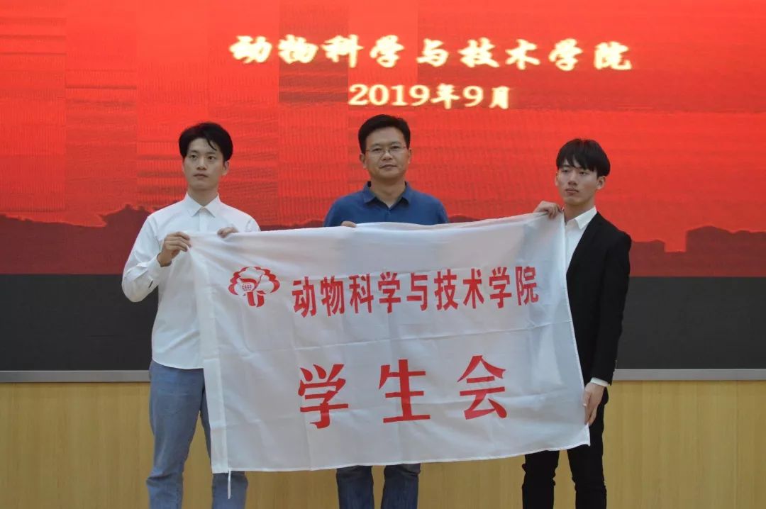 然后进行了五会交接,由我院党委副书记王小龙为各学生组织的新主席授旗。