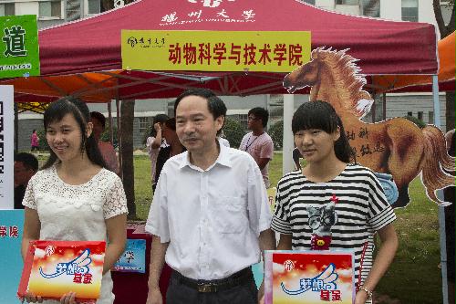 9月10日,迎新工作开始,动科学院积极开展迎新工作,校长焦新安亲自前来动科学院迎新帐篷前,并为新生王诗琴和雷世玉提供“梦想基金”。