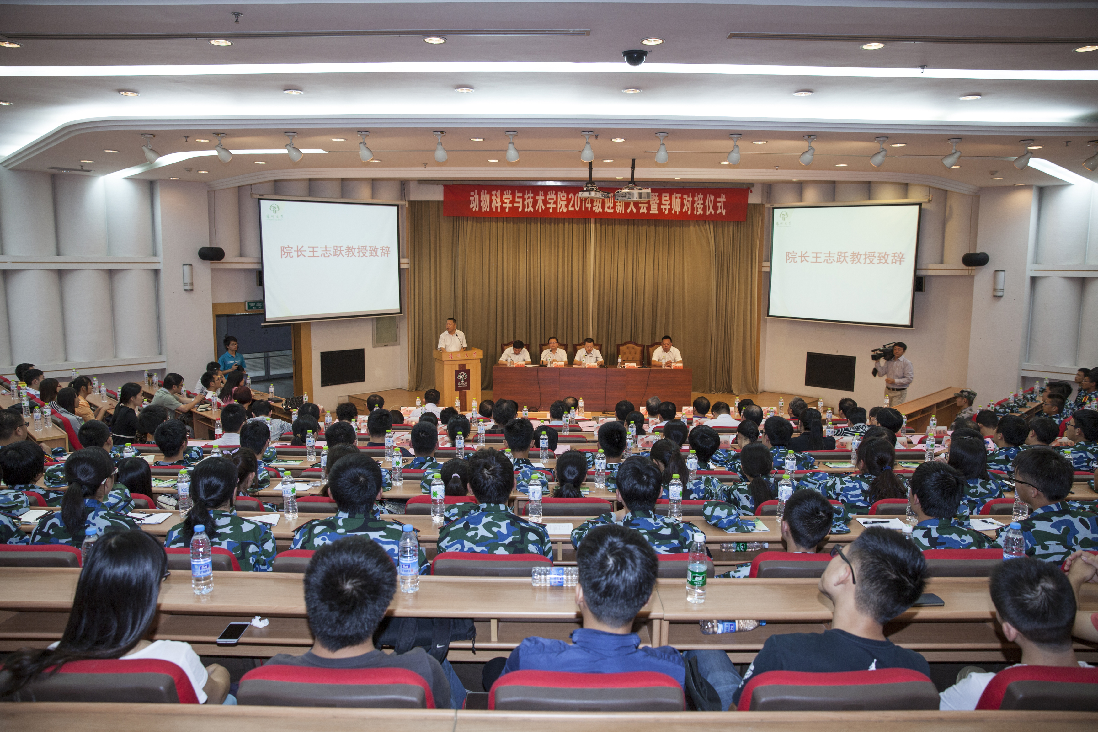 2014年9月17日下午2:30,动科学院举行了2014级迎新大会暨导师对接仪式。全院领导出席了这次会议,院党委陈克勤副书记主持会议。会议旨在欢迎新生并为新生对接导师,让每一个老师都有要牵挂的学生、让每一个学生都有可倾诉的老师。