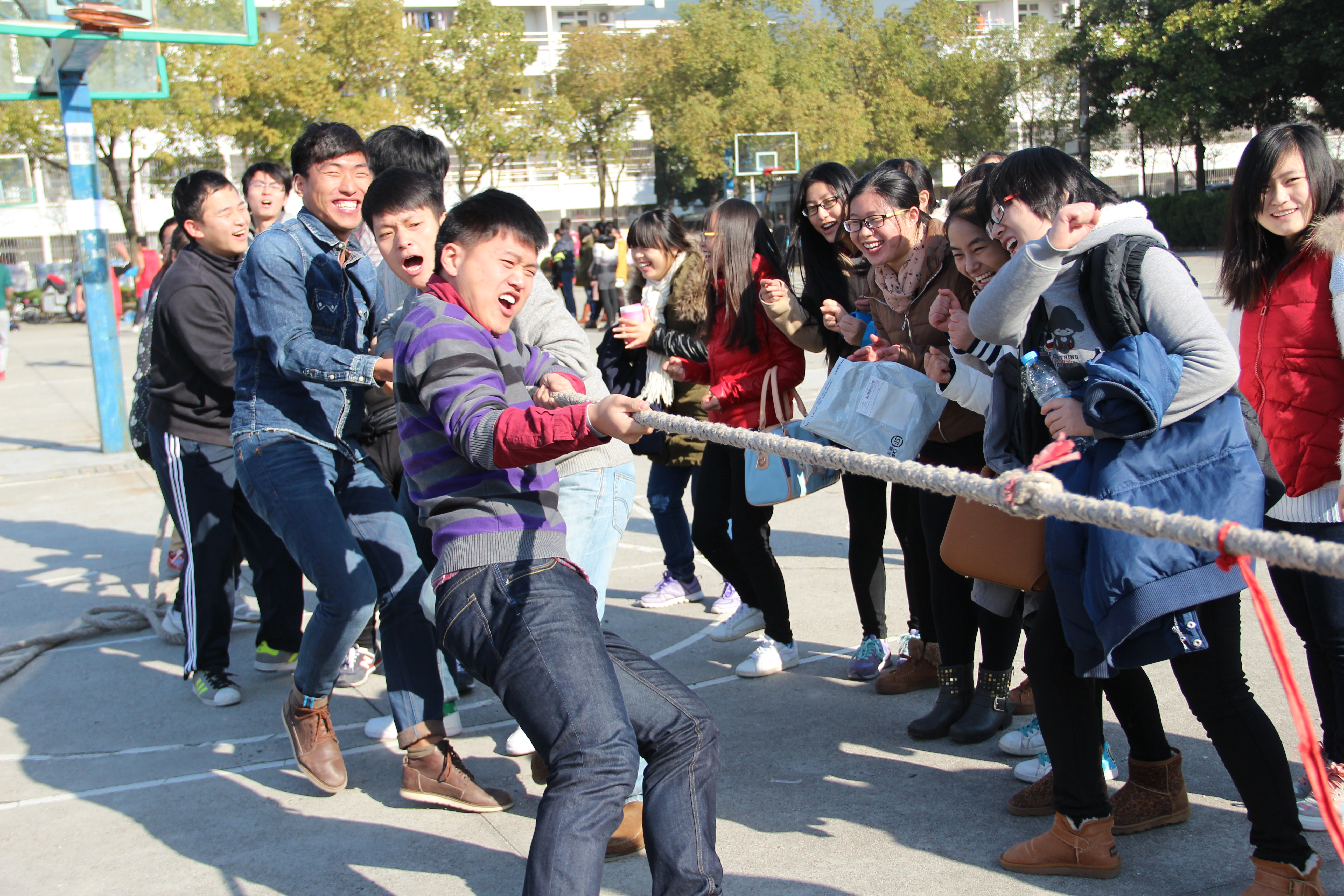 本次比赛共设有定点投篮、毽跃时代、滚雪球、拔河等8个项目,“定点投篮”等个人项目中,同学们积极发挥个人所长,努力为集体争取荣誉。“慢车比赛”和“拔河”等团体项目中师生们团结一致,互帮互助,共同为本班级出力。比赛过程中,每一位参赛选手,每一个动作都牵动着观众们的心弦。竞技场上呐喊声此起彼伏,欢笑声阵阵不断,大家在紧张的学习和工作之余体验着运动的激情和团结协作的乐趣。