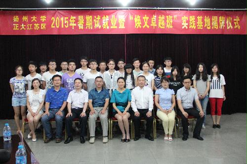 正大集团江苏区招聘中心经理杨晓军主持仪式,并介绍了正大集团江苏区的发展概况。张彦在致辞中强调,服务区域经济社会发展,是高等教育的重要职能;培养具有创新精神、实践能力和社会责任感的有用人才,是一所大学的核心使命。希望同学们感受正大,培育创新精神;融入正大,增强实践能力;携手正大,提升社会责任感。张鸿飞热情回顾了七年来双方合作走过的历程,以详尽的数据着重介绍了公司近三年的发展情况,展望产业发展前景,并从知识、实践、安全等方面对试就业学生们提出了要求和希望。