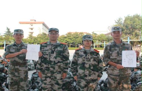 “教官,祝您教师节快乐!”新生们自发围成一个心形图案,喊出嘹亮的口号。新生代表为教官端上刚刚泡好的蜂蜜茶,并赠送凌宇和李琰同学特地为教官准备的人物漫画像。为缓解教官嗓子不适的症状,大家还准备了两瓶蜂蜜赠予教官,以此表达对教官的谢意。