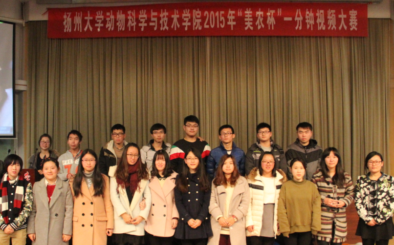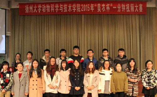 11月29日,由动物科学与技术学院摄影协会主办的“美农杯”一分钟视频大赛,在逸夫图书馆报告厅举行。本次比赛以“创意生活,拍出精彩”为主题,共吸引了有来自扬大各个校区以及南京邮电大学通达学院的14队伍参加。扬大各学院学生会主席、副主席应邀担任评委。