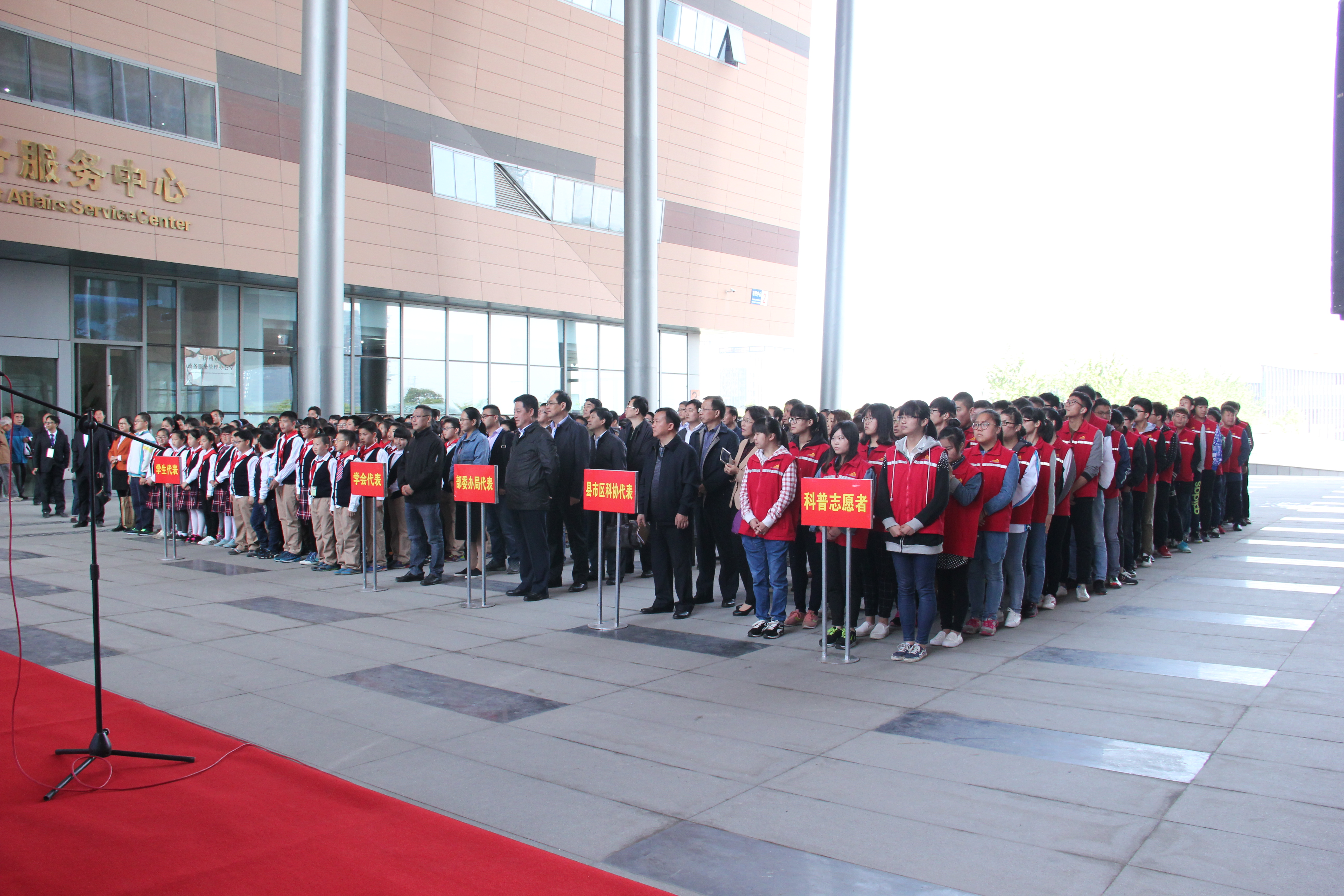 5月10日上午九点半,扬州市政府副市长何金发参加在扬州科技馆举行的科普宣传周启动仪式,参加启动仪式的相关领导,以及扬州大学动科学院和通达学院的学生义工和东关小学文昌校区的小学生。