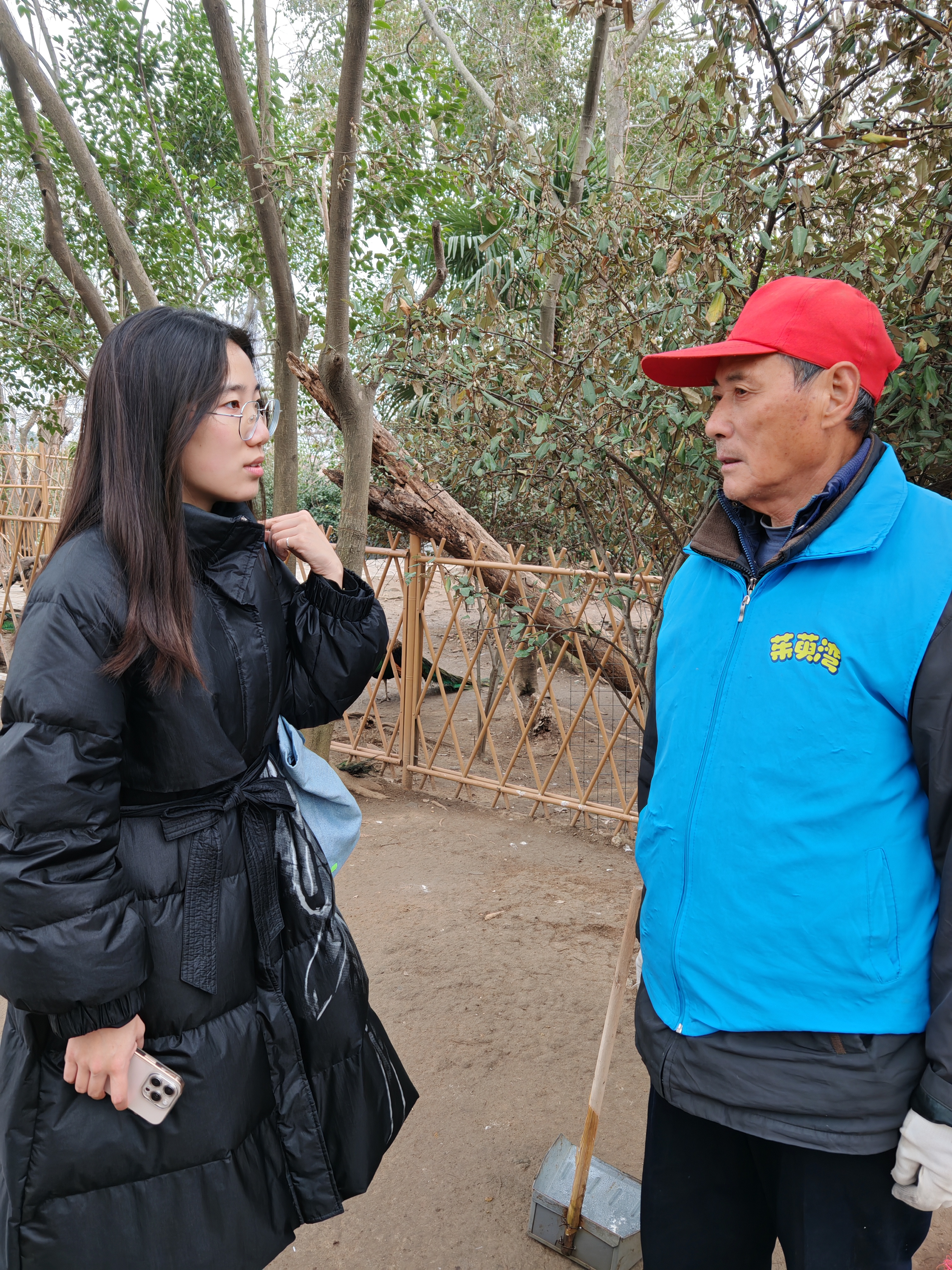 活动中,学生们分组与景区动物饲养员、生态养护员及管理人员深入交流。动科专业学生观察动物行为管理与营养配比,水产专业学生探讨水生动物繁育与环境调控技术,草业专业学生结合景区植被规划学习生态修复方案。工作人员结合岗位职责,向学生讲解行业技能需求及职业发展路径。